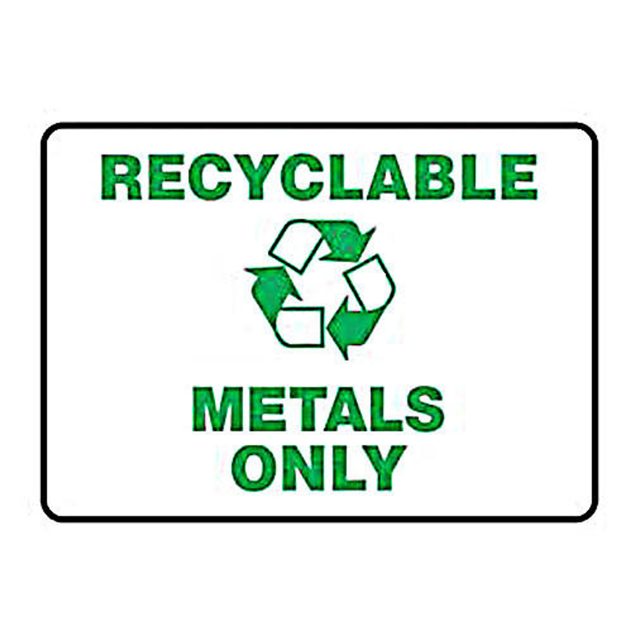 Go GREEN with a variety of GREEN themed identification products from Shiffler. Motivate your students to THINK GREEN. Every little step helps. Facility identification marker signs are heavy duty .080 aluminum signs that will not rust. The reflective sign face provides added visibility in low light conditions. The UV resistant inks prevent fading during long term outdoor use. Supplied with top and bottom center holes for post or fence mounting.Questions about 10"H x 14"W Recyclable Metals Only sign?