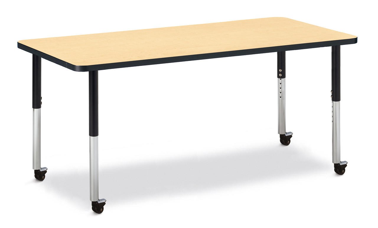 Berries Rectangle Activity Table - 30" X 72", Mobile - Maple/Black/Black