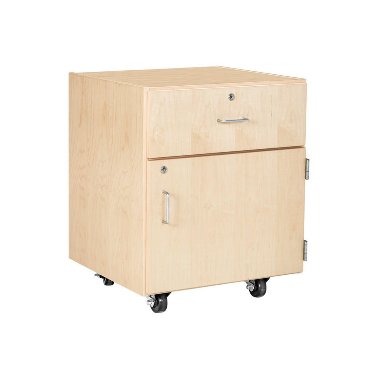 Perfect to use as a stand alone unit, or to fit underneath our best-selling tables. These oak and maple veneered cabinets are finished with a chemical resistant, earth-friendly UV finish. The drawers are fully dovetailed, with locks, and have full extension glides. The cabinets roll on 4 inch heavy-duty ball-bearing casters with brakes. Available in sitting (24 inch) and standing (30 inch) heights. Weight capacity of 500 lbs. Shipped assembled except for the casters. (Table Sold Separately). This item measures: 30 H x 24 W x 22 D (inches)Questions about Diversified Woodcrafts 30"H M Series 1 Door/Drawer Right, Maple?