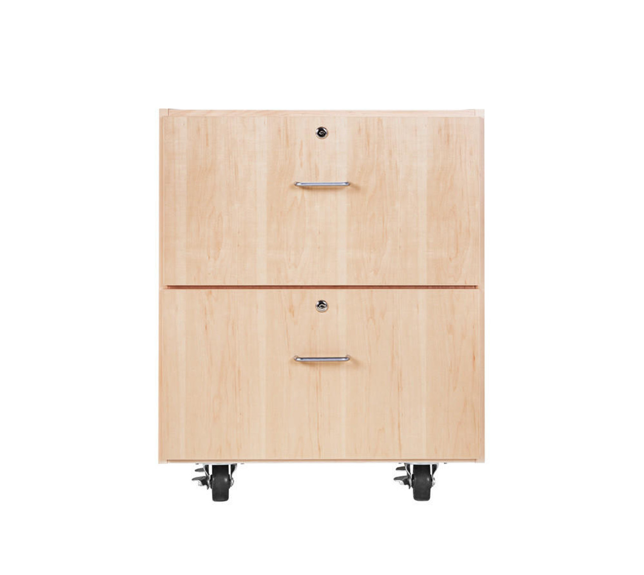 Perfect to use as a stand alone unit, or to fit underneath our best-selling tables. These oak and maple veneered cabinets are finished with a chemical resistant, earth-friendly UV finish. The drawers are fully dovetailed, with locks, and have full extension glides. The cabinets roll on 4 inch heavy-duty ball-bearing casters with brakes. Available in sitting (24 inch) and standing (30 inch) heights. Weight capacity of 500 lbs. Shipped assembled except for the casters. (Table Sold Separately). This item measures: 30 H x 24 W x 22 D (inches)Questions about Diversified Woodcrafts 30"H M Series 2 Drawer, Maple?