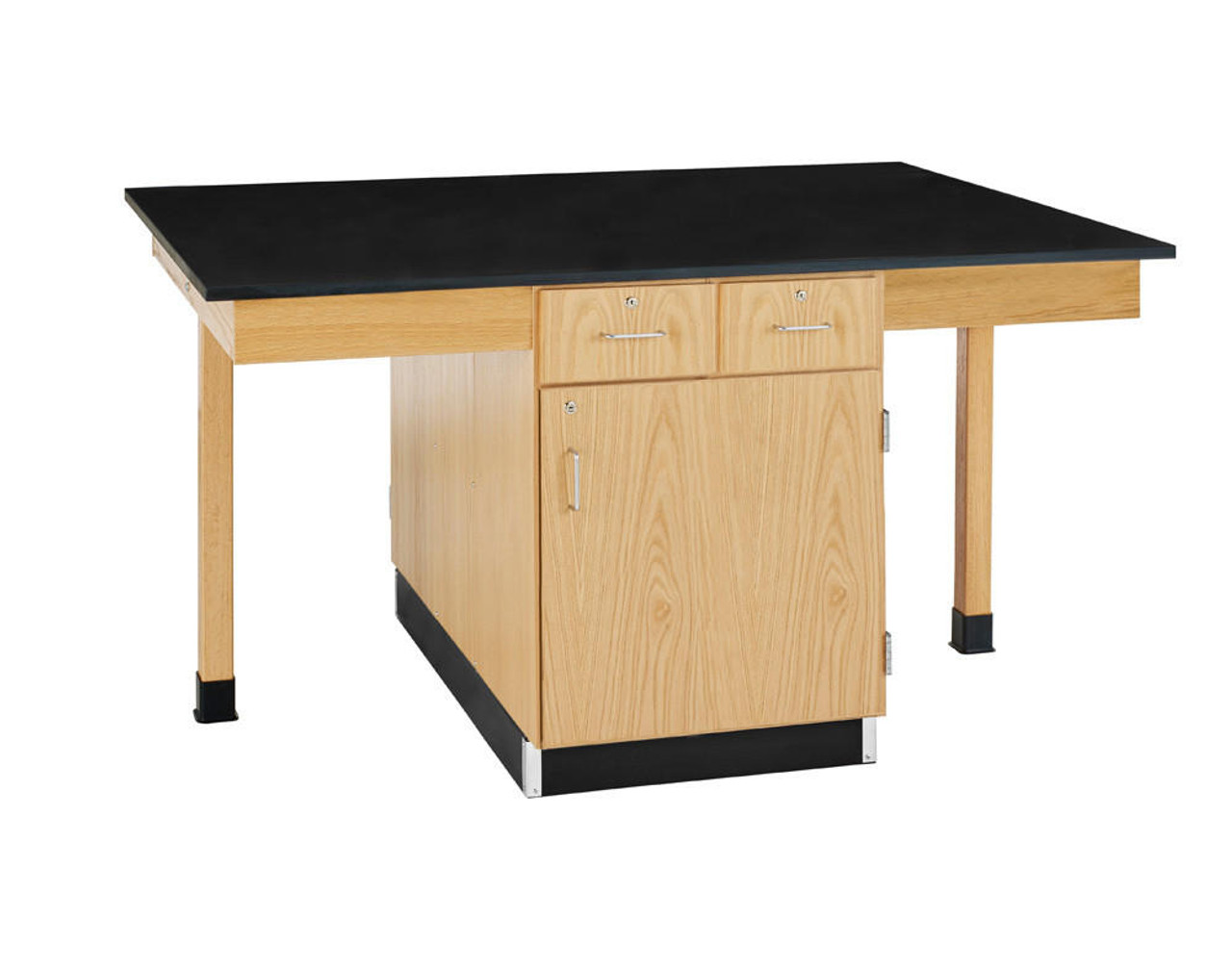 Storage Cabinet Tables are constructed of solid oak and hardwood veneers, this table features a center cabinet with lock, and rubber base molding. This table is available with plain or book compartment aprons and comes in both single (2-student) and double faced (4-student) models. The center cabinet is available with two locking drawers or as a plain base cabinet with adjustable shelf. These tables are designed for use at sitting height. They are finished with a chemical resistant, earth-friendly UV finish. This unit is available with our complete line of top materials to satisfy every requirement or budget. This item measures: 30 H x 66 W x 42 D (inches)Questions about Diversified Woodcrafts 4 Student Oak Cupboard Table, Book Compartment Apron, Door/Drawer Cabinet, Phenolic Resin Top, 66"w x 42"d x 30"h?