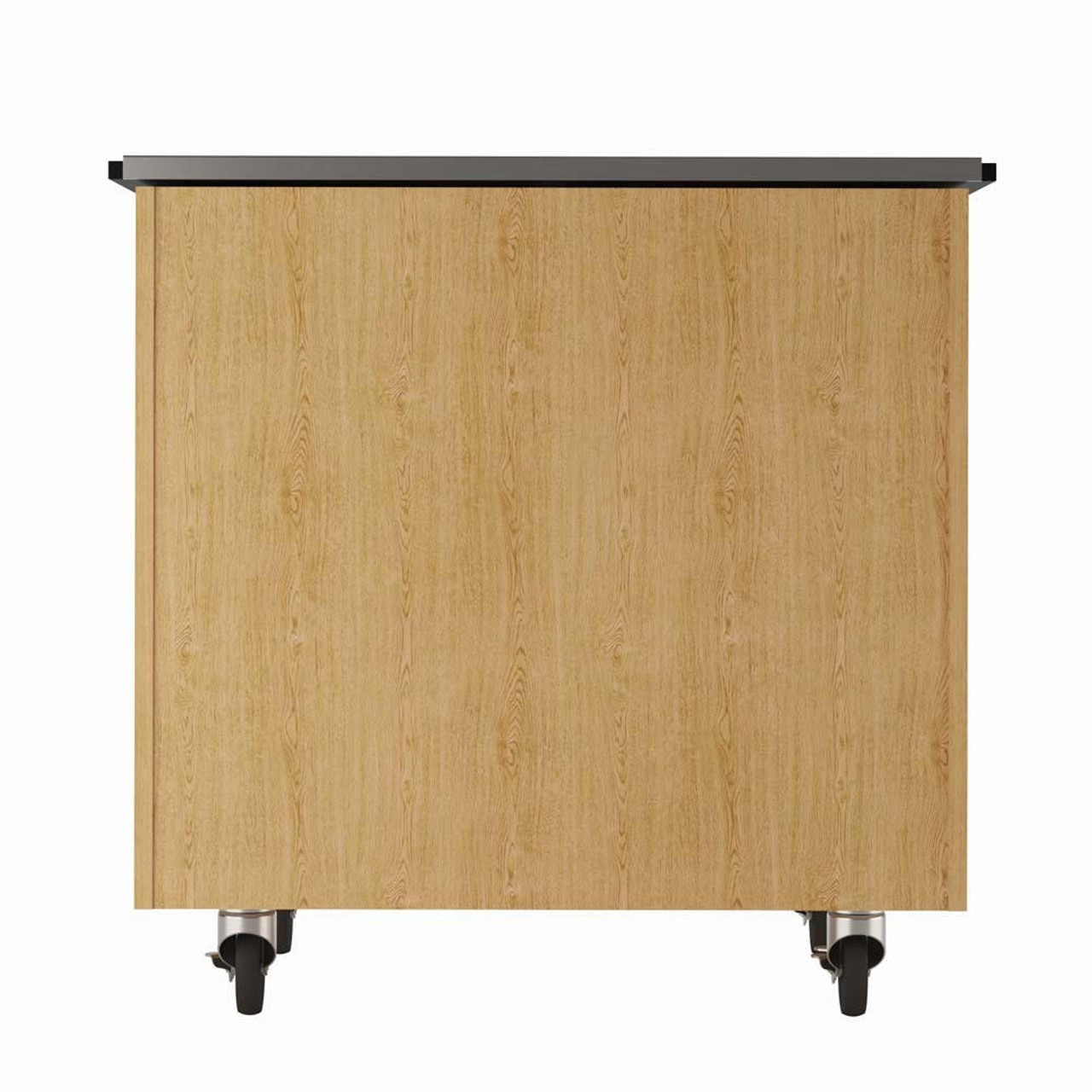 Versatile mobile storage with an adjustable position top that has a 3mm black PVC edge. The top is made of 3/4" white marker board so messages or techniques can be demonstrated. Directly beneath the top is storage for flat items like paper and books measuring 19" x 25." The top can be positioned conveniently with the two 10-position arms. The cabinet is constructed of oak and select hardwood veneers with a chemical resistant, earth-friendly UV finish. Open the doors which feature 96MM pulls to reveal even more storage. The left side of the cabinet has five translucent Euro tote trays (12-1/4"W x 16-3/4"L x 3"H) made of high-impact polystyrene. The right side of the unit features three drawers (13" x 17" x2-1/2" inside dimension) that are mounted on adjustable drawer glides that can be mounted on 1/2" centers. With a mobile capacity of 500 lbs., it rolls easily on 4" swivel casters with brakes. Dimensions: 36"W x 24"D x 36"H. Weight: 175 lbs.Questions about Diversified Woodcrafts Certwood Tote Tray Versatile Mobile Storage, Oak with White Markerboard Top, Five Tote Trays, Three Drawers 36w x 24d x 36h, Tote Color Lime?