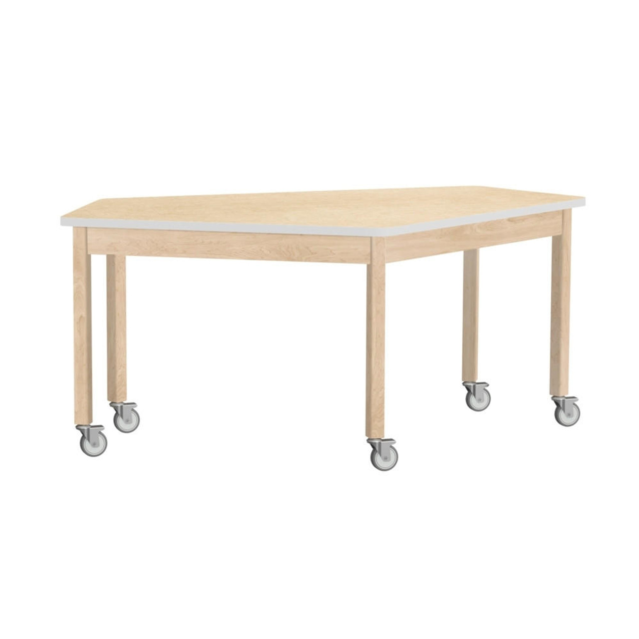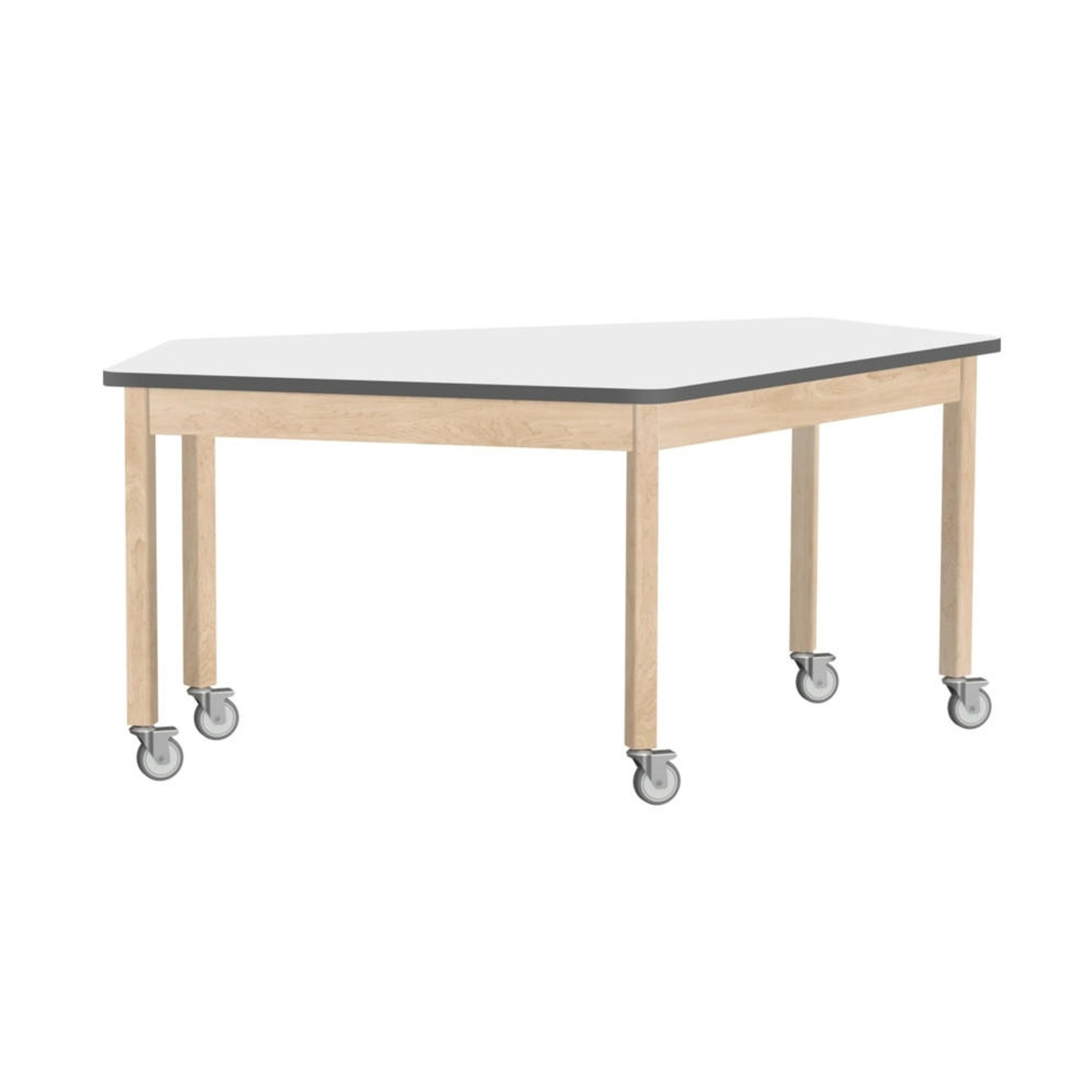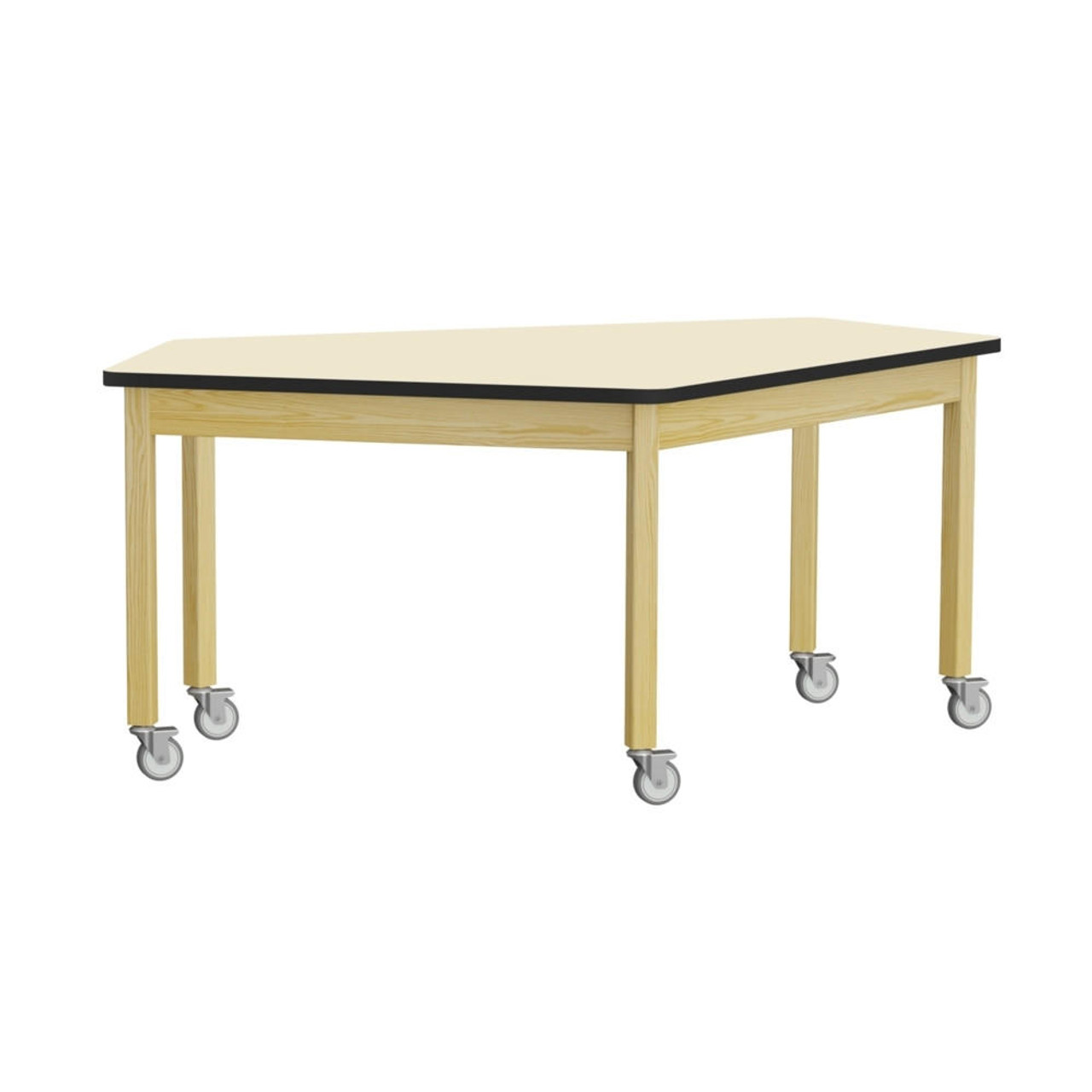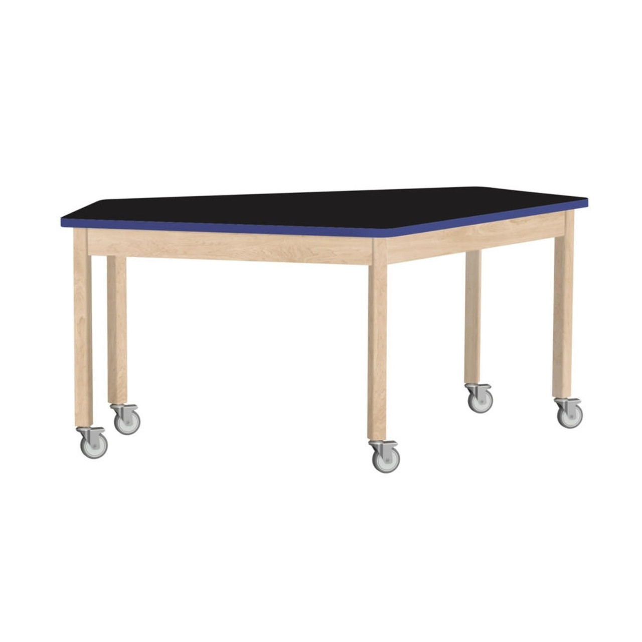 Designed by taking our most popular work station and making it into a mobile table. This new table provides flexibility in the classroom by reconfiguring your space! Legs and aprons are constructed of maple veneer and is 13/16D x 4-1/2H with heavy-duty, 13 gauge steel corner braces, 2-1/4 square legs with 5/16 hanger bolts installed, are attached to apron with nuts and washers supplied. The Forward Vision tables are equipped with locking casters. Top Surface: 1-1/4 HPL with 3mm edge, Overall size: 84" X 44" X 36"Questions about Diversified Woodcrafts Forward Vision Table, 5 Legged WorkStation, 36in high 125 plam top, black, 4in locking caster?