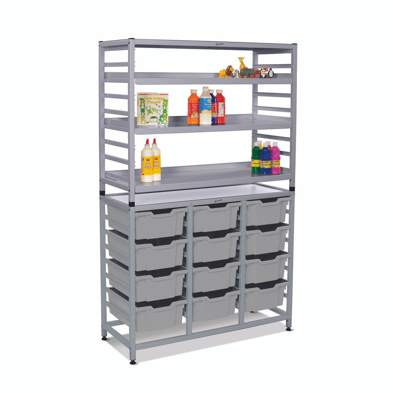 The Dynamis Combo Cart range from Gratnells is a flexible, cost-effective storage system, compatible with the award-winning Gratnells tray range. With both static frame and cart options available, the Dynamis range is perfect for any classroom environment. Gratnells trays are interchangeable between cart and frame options. You can easily move equipment around the school as needed. Dynamis Combo Cart Set 12 Silver (44) with feet 3 shelves 12-6 inch deep Light Gray (19) TraysQuestions about Dynamis Combo Cart Set 12 Silver (44) with feet 3 shelves 12-6 inch deep Light Gray (19) Trays?