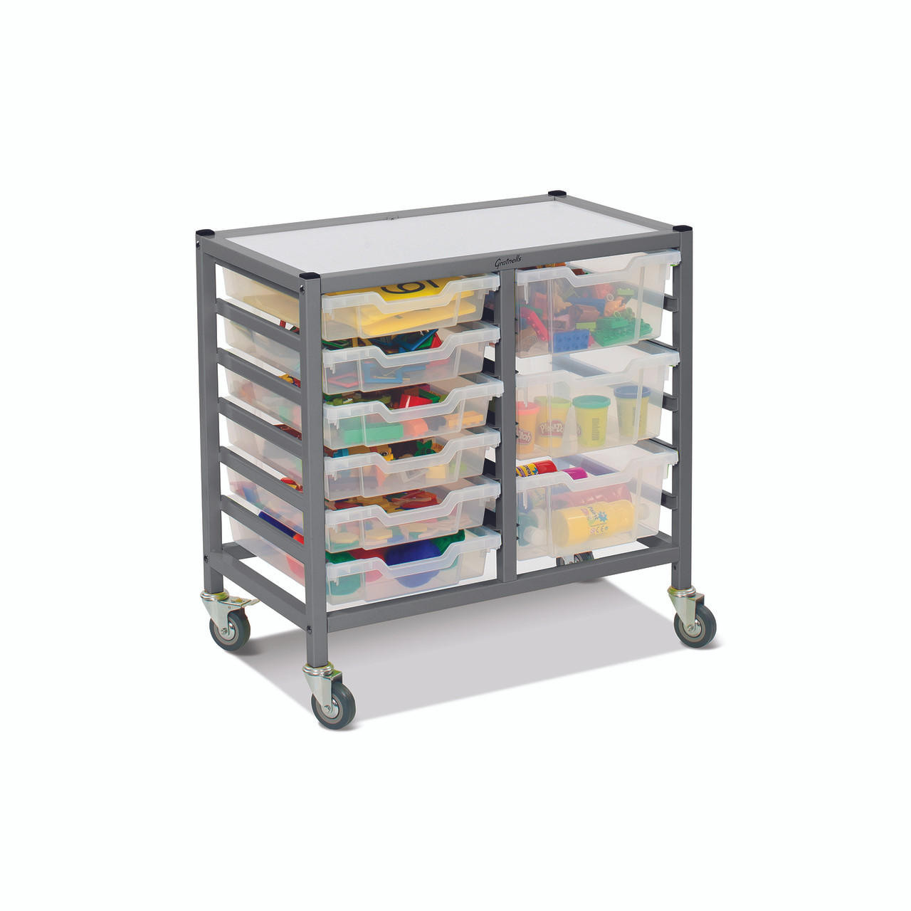 The Dynamis Low Double Cart range from Gratnells is a flexible, cost-effective storage system, compatible with the award-winning Gratnells tray range. With both static frame and cart options available, the Dynamis range is perfect for any classroom environment. Gratnells trays are interchangeable between cart and frame options. You can easily move equipment around the school as needed. Dynamis Low Double Cart Silver (44) Set 43 with 3" Casters, 2 braked & Feet 6-3 inch and 3- 6 inch Translucent (20) TraysQuestions about Dynamis Low Double Cart Silver (44) Set 44 with 3" Casters, 2 braked & Feet 6-3 inch and 3- 6 inch Translucent (20) Trays?