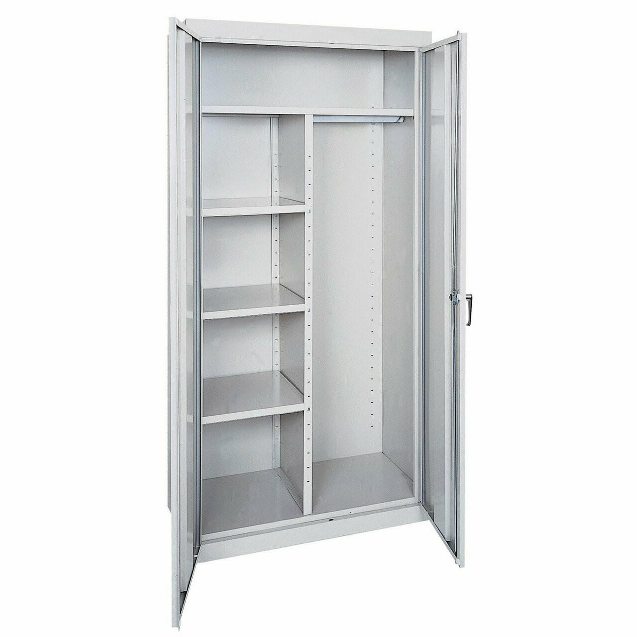 The EACR362472 Elite series combination storage cabinet features a full width top shelf, three adjustable side shelves and a garment rod. A three point recessed locking handle. The unit measures 36''W x 24''D x 72''H.