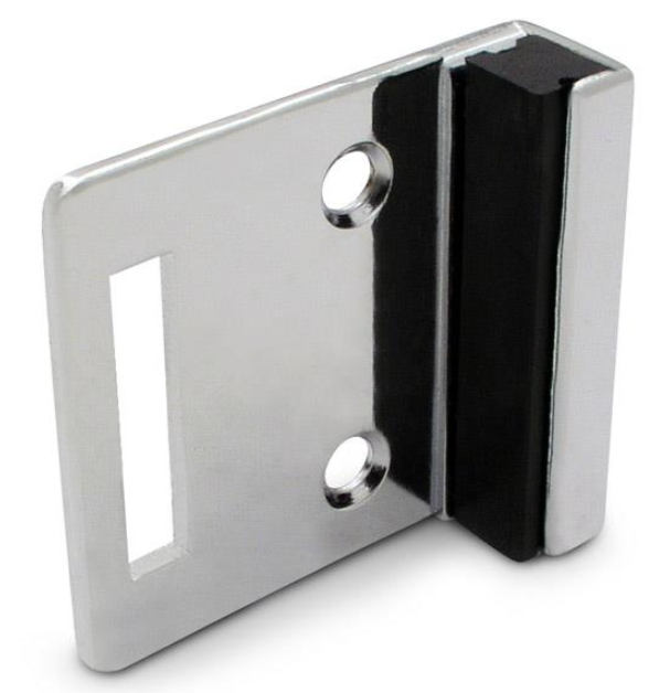 Flat Mount Strike/Keeper for wall or 1-1/4" pilaster. Can be used with inswing doors.| Material | : chrome plated Zamak (pot metal) |