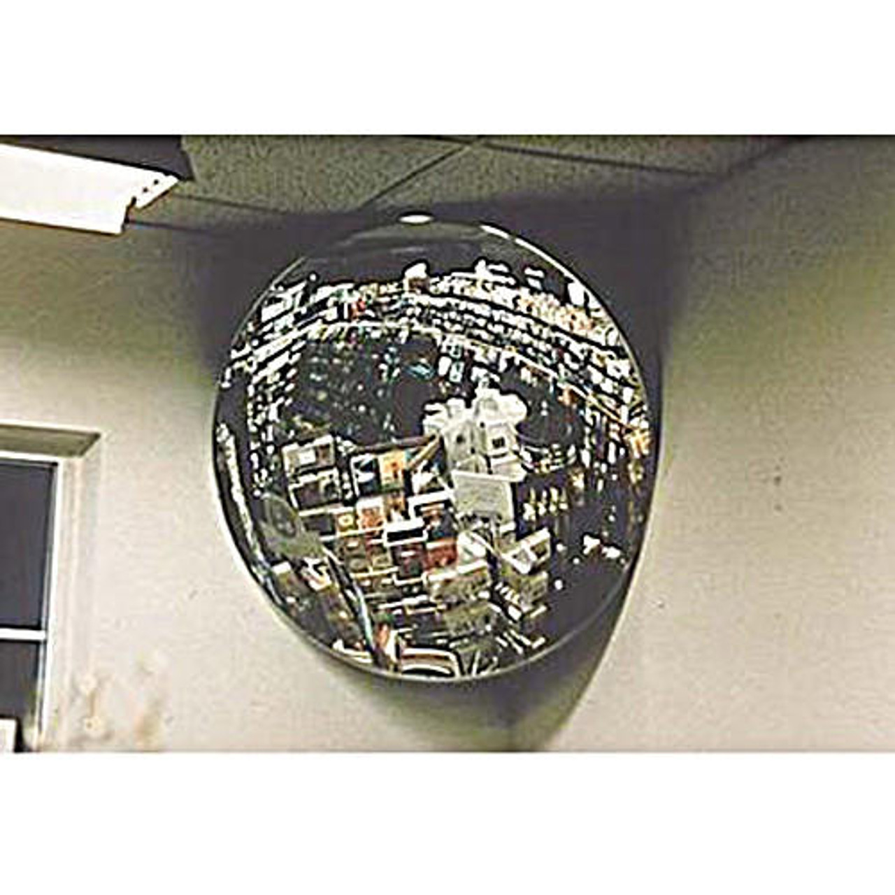 Indoor Convex Mirrors are widely used for retail, warehouse, hospital, public areas, loading docks, manufacturer/production facilities, garages and driveways. Convex mirrors be ceiling or wall-mounted and come with our advanced mounting hardware kit for easier mounting. The lens is Grade A, non-tarnish Acrylic shatter-resistant material. 18" diameter with 18' viewing area. 5 lbs. 160 degree viewing area. Excellent clarity.Questions about Fred Silver Convex Mirror, Indoor, 160 Degree, Grade A Acrylic, Shatter Resistant, Round - 18" Diameter?