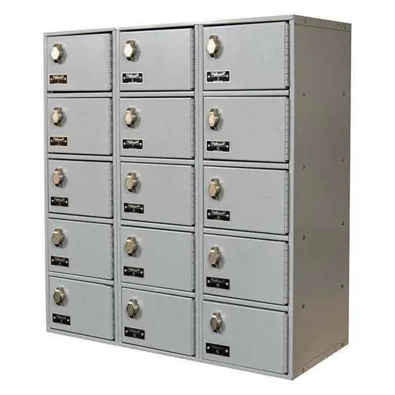 Hallowell Cell Phone/Tablet Locker, 27"W x 12"D x 30-1/2"H, 711 Platinum, 5-Tier, 3-Wide, Assembled. Low profile frame members maximize clear opening. 3 lock options: Prepared for padlock, Built-in key lock, or with Hallowell DigiTech H1 Electronic Lock. Keyless Access uses a PIN controlled digital lock. All steel construction. Wall mountable. 711 Platinum (light gray) powder coat finish. Ideal for use in government buildings, schools, health clubs or any location where personal items, cell phones and tablets need to be securely stored.About Hallowell