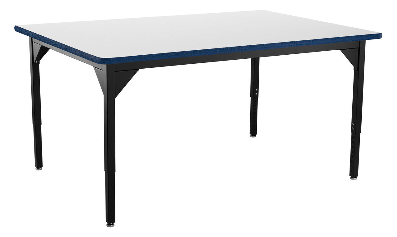 The NPS Supreme Heavy Duty Table with High Pressure Laminate top is the ideal fit for the classroom environment. The table top is stain and scratch resistant allowing for long term-use. 16 gauge steel frame apron and 14 gauge legs make this table virtually indestructible. The legs adjust in 1" increments and are locked firmly in place with 2 K-9 external tooth lock washers and heavy duty tamper-free hex screws. All legs come standard with simple-adjust glides and have a caster option for easy mobility. NPS Heavy Duty Table with Supreme High Pressure Laminate top. Play. Work. Study
