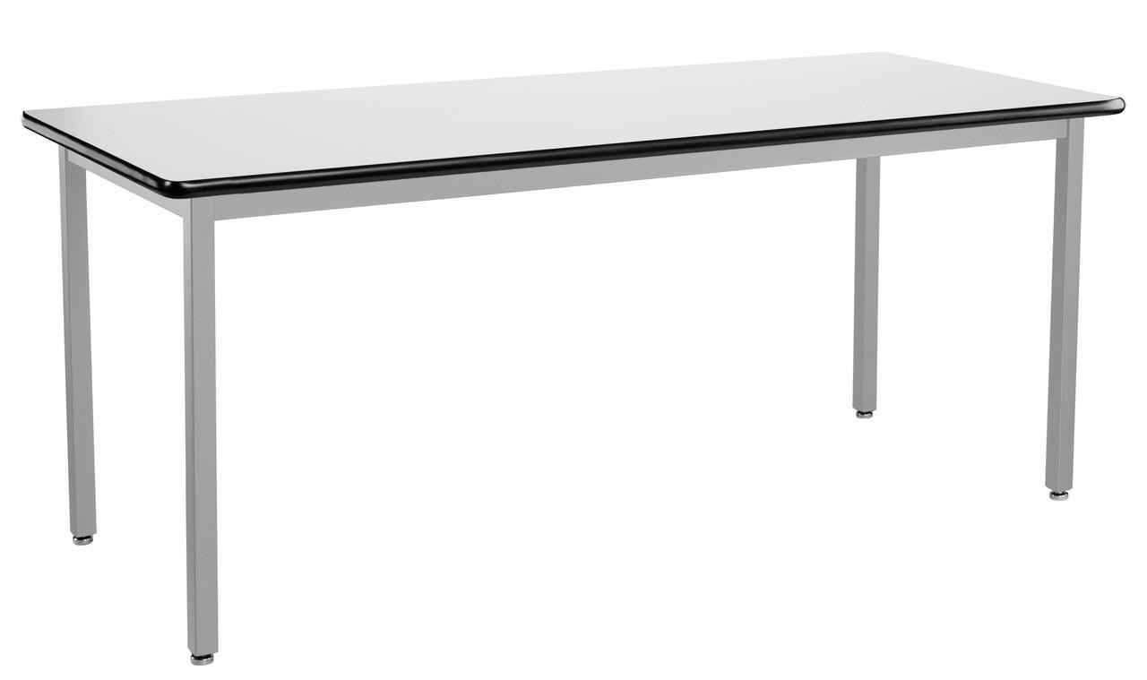 The NPS Heavy Duty Table with White Board Top provides for on-the-spot collaboration. From writing to brainstorming, students can easily jot down and share their ideas. The 1.25" thick High Pressure Laminate tabletop is easy to clean and will resist scratches. 16 gauge steel frame apron and 14 gauge legs make this table virtually indestructible. The 11 gauge steel tabletop support tabs and corner brackets fuse as one with 4 heavy-duty tamper-free Loctite hex screws. The steel legs feature a supreme dual connection. The (12 gauge) leg-base is fastened to the tabletop with 4 heavy-duty screws which gets inserted into the frame using a strong welded hangar bolt. Legs connect to the frame corner brackets with industrial-grade nylon-insert lock nuts. All legs come standard with simple-adjust glides with optional caster/gusset kits. NPS White Board Utility tableÌãit's write-on collaboration.