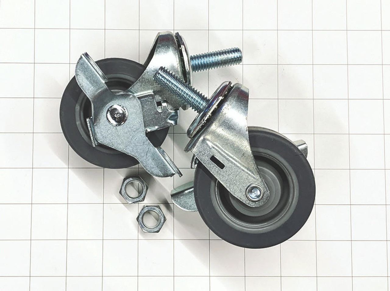 Kit includes: (2) 3"x1.25" Locking Poly black, casters, 1/2"-13 zinc plated, threaded stem mount, (2) Hex Lock Nut